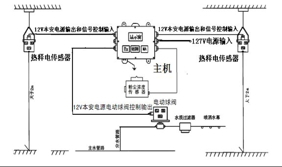 人通過灑水區(qū)域后,熱釋光控傳感器無信號輸出,延時所設定的時間后,電動球閥開啟繼續(xù)噴霧。可與煤礦監(jiān)控系統(tǒng)聯(lián)機,實現(xiàn)粉塵濃度狀況井上傳輸。